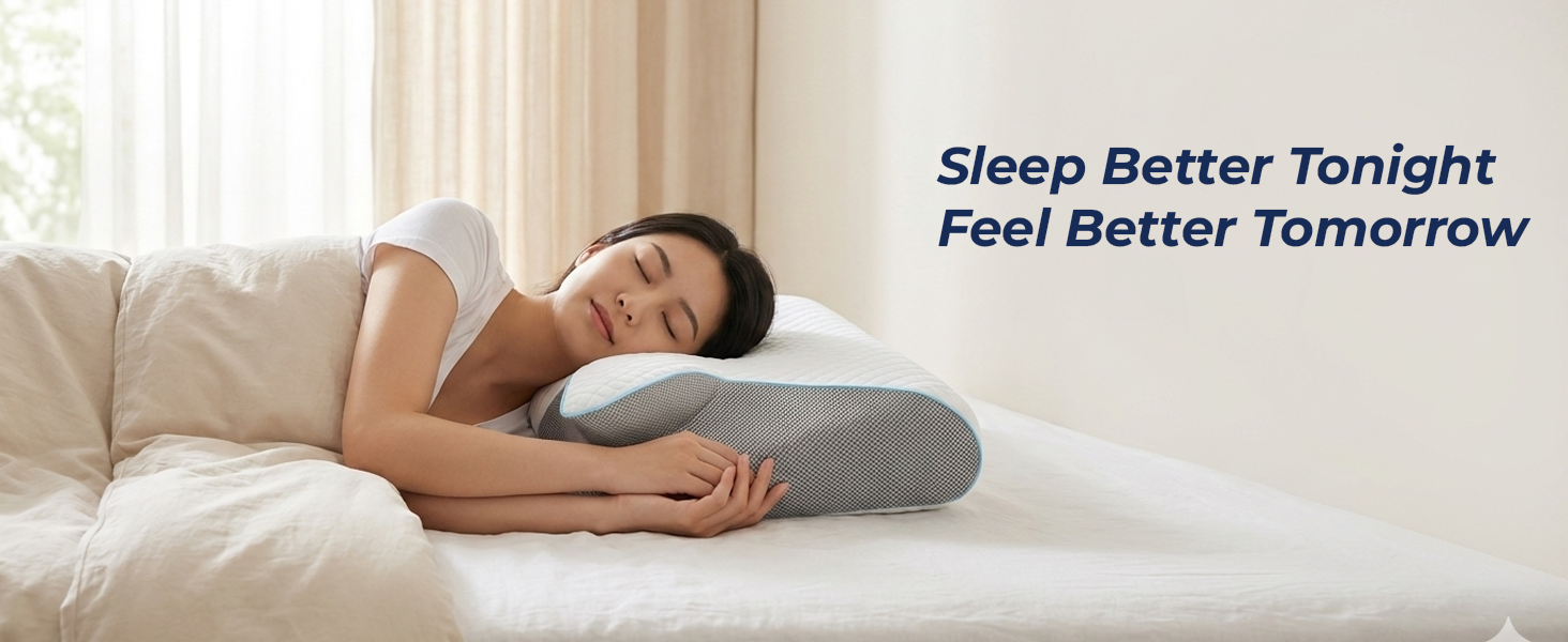 Contoured shape that supports the natural curve of the neck and shoulders, helping keep proper alignment in different sleeping positions.